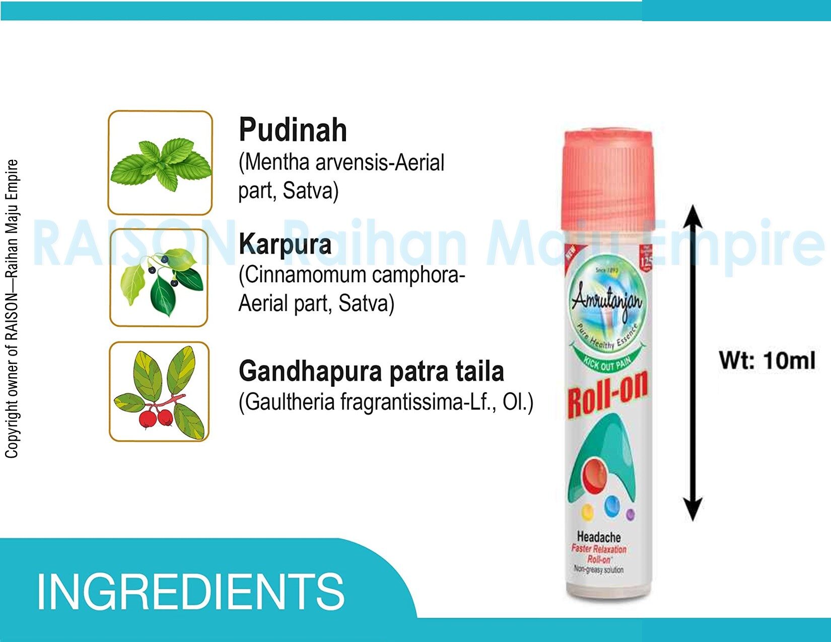 Pudinah – 35%, Karpura – 15%, Gandhapura Patra Taila – 20%.