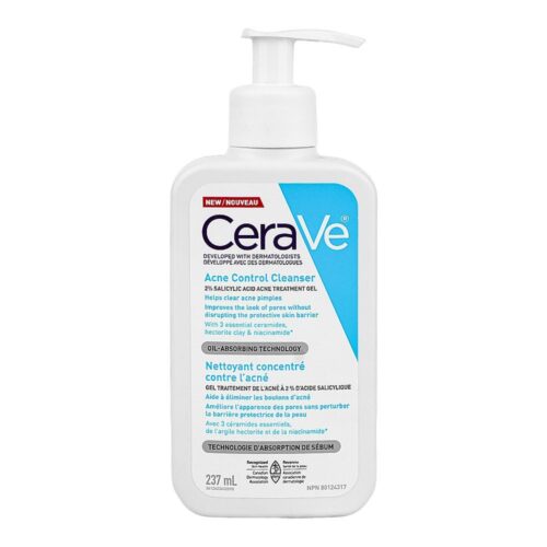 CeraVe is the #1 dermatologist-recommended cleanser brand for acne*, and our new Acne Control Cleanser with 2% salicylic acid is formulated to clear acne, reduce blackheads and improve the appearance of pores, while purifying clay helps absorb excess oil. Featuring Oil-Absorbing Technology to minimize visible shine, this refreshing, gel-to-foam salicylic acid cleanser effectively removes dirt and excess oil, gently exfoliates and penetrates clogged pores to help prevent new acne breakouts. Acne Control Cleanser also maintains the skin’s protective barrier with 3 essential ceramides, calms the skin with niacinamide and reduces acne while leaving the skin soft, smooth and hydrated.