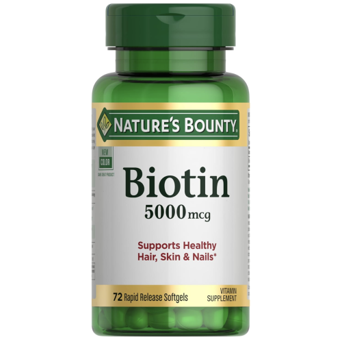 HAIR HEALTH 72-count 5000mcg Biotin Rapid Release Softgels; Biotin is the most commonly used vitamin for healthy hair(1); Nature’s Bounty Biotin 5000mcg combines science and innovation to help support and maintain healthy, beautiful hair (1)