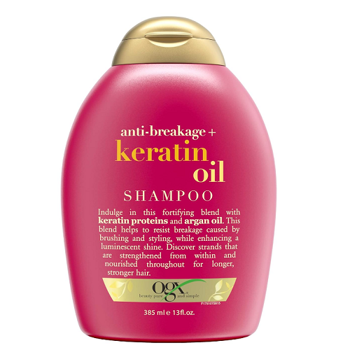 Indulge, fortify & strengthen your tresses with OGX Anti-Breakage + Keratin Oil Shampoo. This damage repair shampoo helps resist breakage caused by brushing and styling as it strengthens split ends. Designed to reduce fizz, the fortifying shampoo also helps increase elasticity so you can maintain longer, stronger locks with a luminescent shine. The nourishing damage-repair blend is fortified with smoothing and conditioning argan oil in addition to keratin proteins, which help fortify strands and are known to prevent breakage. Plus, the tropical orange, island pineapple and golden amber scent makes lathering up an all-around sensory experience that leaves locks with an irresistibly good smell. Paraben-free with sulfate-free surfactants, this keratin oil split-end shampoo represents beauty, pure and simple. For best results and to help smooth strands, use with Anti-Breakage + Keratin Oil Conditioner and other products in our fortifying Keratin Oil hair care collection.