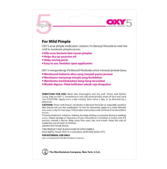 OXY 5 Regular Benzoyl Peroxide Acne Pimple Medication Mild 25g