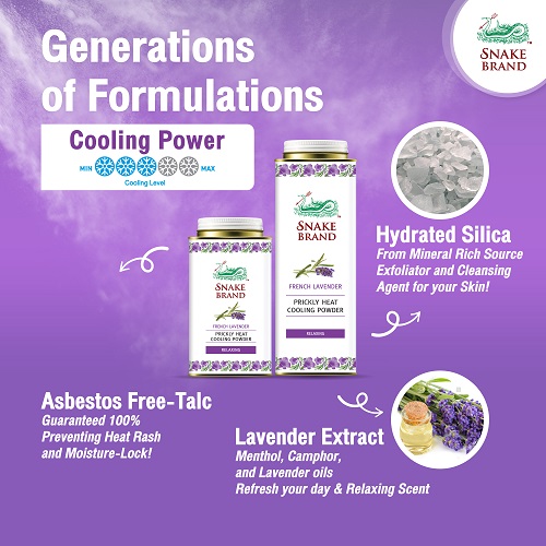 Snake Brand French Lavender Prickly Heat Cooling Powder Relaxing 280g