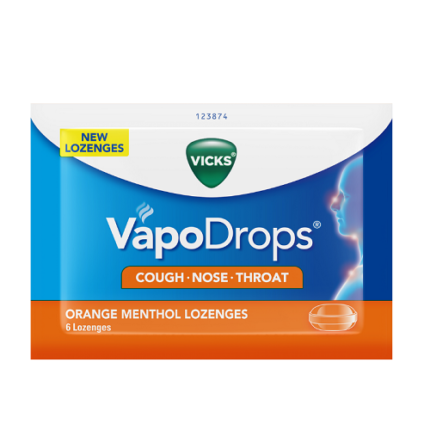 Vicks VapoDrops Orange Menthol 6 Lozenges For Cough Nose Throat ৳ 200.00