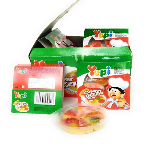 • Yupi Gummy Candy: 15 grams of round gummy pizza in a 12-count box